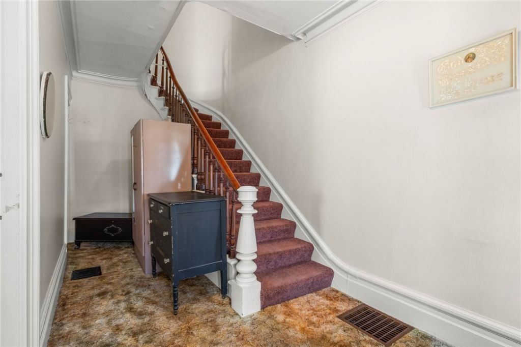Open Sunday 3/22/26 from 1-3! Great investment or owner occupied property in the heart of Batavia. Just 1 block off Main St and an easy walk to the hospital/medical buildings on North St. This 2400 sq ft home has been in the same family for 100+ years! The first floor is about 1300 sq ft with 3 Bedrooms, 1 Full Bath, Formal Dining Room, Living Room and Laundry. There is a private entry at the side door onto the driveway and shared entry at the front and back doors. We believe there is hardwood under the carpeting! The upstairs unit is about 1000 sq ft: The front door enters into a roomy foyer (and access to the 1st floor unit if needed) with a curved stairway to the second floor. At the top of the stairs you walk into a central Living Room with 2 large Bedrooms on either end with a smaller room off the front for a nursery, office, dressing room, etc. A very roomy eat-in Kitchen has an original pantry cupboard! The Bath features a true claw foot tub! A full walk-up attic is accessible from either unit via the back staircase which leads down to the mudroom with access to the basement (with the upper unit's laundry), 1st floor laundry the back hall entrance to the first floor unit and the back door opening onto the covered cement porch! The 1st floor could be ready to live in after only a day or two of pulling up carpeting! AND...the first floor has the potential to be handicap accessible! The tall ceilings, crown molding, possible hardwood floors and 2 beautiful ceiling medallions show the true charm of this 1890's home. You can absolutely tell that this is a HOME not just a house. All of this PLUS a garage, parking area and a big yard! Both units are now vacant. Delayed Negotiations: Offers due on Friday March 27 at 7PM.