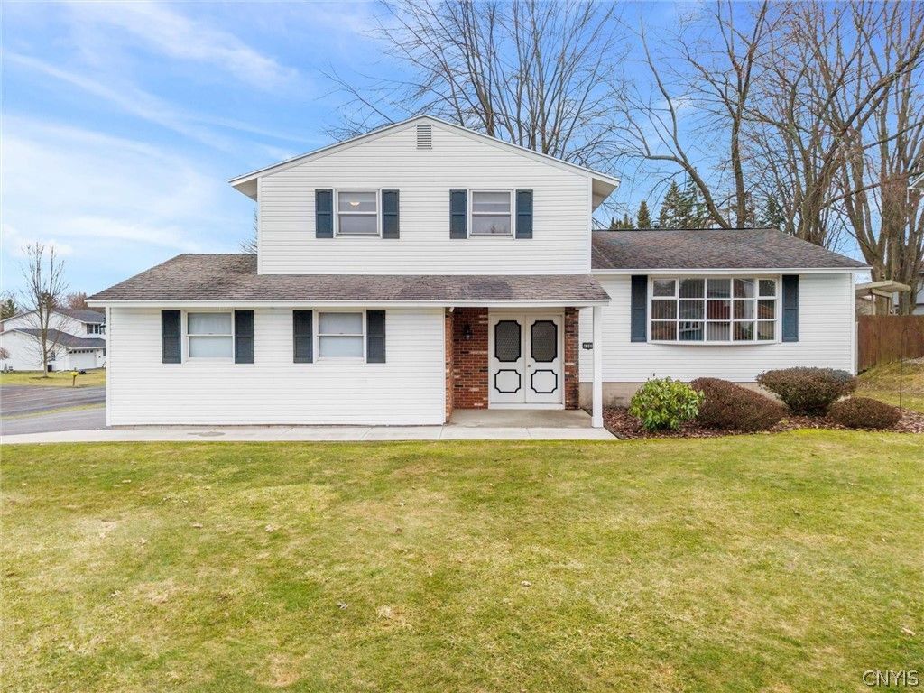 Beautifully maintained and truly move-in ready, this spotless split-level home has been lovingly cared for and thoughtfully updated throughout. Located in the desirable Merrill Farms neighborhood within the Liverpool School District, and just moments from the Wegmans shopping center. This home provides a wonderful layout with 3 bedrooms and a spacious full bathroom on the upper level. The main level features an eat-in kitchen, a formal living room (currently used as a dining room), and a formal dining room (perfectly suited as a home office or study). Just a few steps down, you'll find a cozy family room complete with a new electric fireplace and mantel and a newly renovated half bath. The partially finished basement adds 180 sq ft of additional living space, perfect for a playroom, rec room, or hobby area. Recent updates include new flooring and carpeting throughout, a renovated finished basement space, new garage doors, and so much more. Outside, situated on a large corner lot enjoy the convenience of a double-wide driveway, two car garage and a garage door screen-perfect for enjoying additional living space in the warmer months. A whole-house generator adds peace of mind year-round. This is the kind of home that feels just right the moment you walk in.